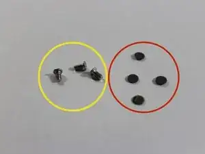 Снимите четыре резинки с углов рамы экрана, чтобы получить доступ к винтам за ними.