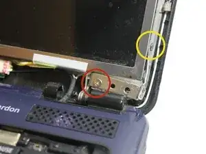 Теперь вам нужно снять рамку. Это пластиковая рамка вокруг экрана. Аккуратно потяните её вперед, а затем вверх, чтобы отсоединить от мест соединения с петлями.