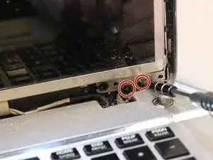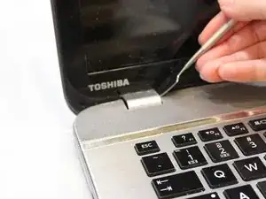 Откройте ноутбук и воспользуйтесь отверткой Philips #1, чтобы открутить каждый винт в углах экрана.