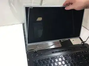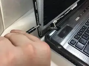 Когда пластиковая окантовка будет открыта, вы можете ее удалить. Осторожно отогните окантовку экрана от петель компьютера.