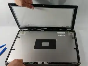 Отделите переднюю панель от экрана, оставив соседние кромки соприкасающимися вблизи петли ноутбука.