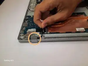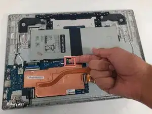 Отключите золотую ленту, соединяющую батарею с материнской платой.