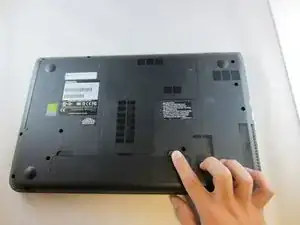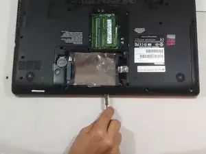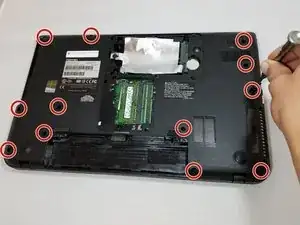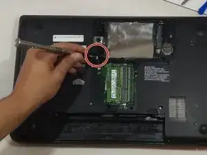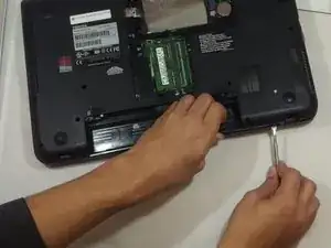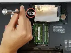 Отвинтите винт PH#1 2 мм рядом с табличкой с информацией об устройстве Toshiba.
