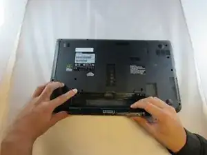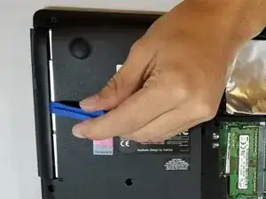 Используя металлическую лопатку, снимите заднюю крышку, проводя лопатку по краям ноутбука. Отожмите нижнюю часть от остальной части устройства, пока они не разделятся.