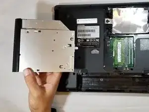 Когда дисковод частично выйдет из корпуса, возьмите его рукой и выдвиньте из слота.