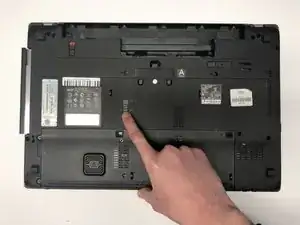 Переверните ноутбук так, чтобы нижняя сторона была вверх.