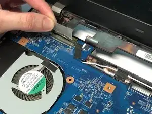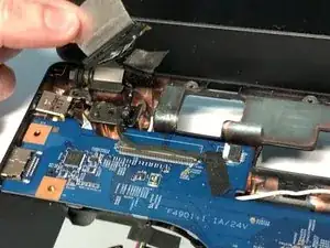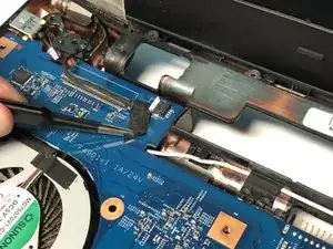 Отключите кабель левого динамика от материнской платы.