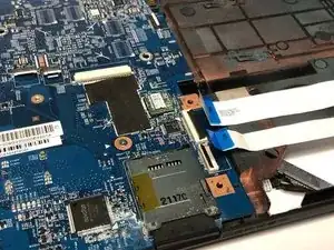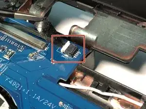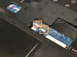 Найдите разъём кабеля тачпада и платы сканера отпечатков.