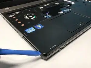 Используйте инструмент для вскрытия, чтобы отделить заднюю крышку основания от нижней части ноутбука.