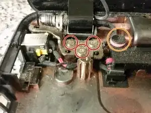 Удалите три винта M2.5x6 Phillips, крепящие левую петлю к корпусу. Нет необходимости снимать винты правой петли.