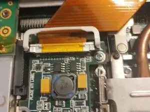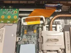 Откройте ноутбук и снимите клавиатуру. Просто поднимите ее за любую клавишу, затем осторожно вытяните серый шлейф, чтобы отключить клавиатуру, НЕ СИНИЙ, ОН СЛОМАТЬСЯ, ЕСЛИ ВЫ ЭТО СДЕЛАЕТЕ (мой отсутствует из-за прошлых ошибок), затем сдвигайте клавиатуру вправо и аккуратно вытащите ее