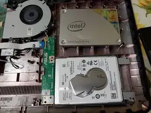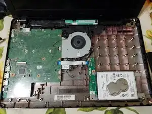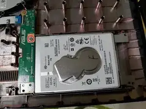 Необходимо открутить единственный винт (отмечен красным), чтобы убрать HDD.