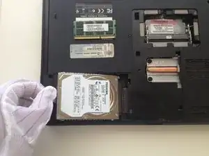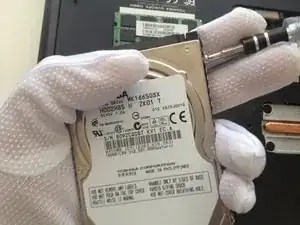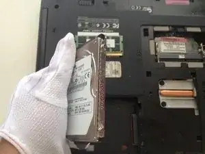 Удалите жесткий диск, сдвинув его от порта к отверстию под винт.
