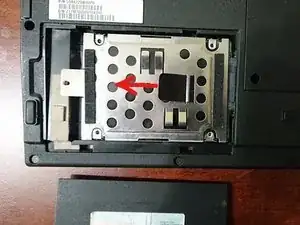 Потяните за держатель HDD влево за его ленту. Теперь вы можете поднять HDD.