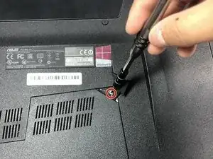 Используйте отвертку Phillips #1, чтобы удалить винт 5,2 мм за резиновой вкладкой.