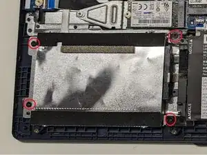 Используйте крестовую отвёртку, чтобы затянуть шесть винтов, крепящих кронштейн SATA-накопителя и батарею.