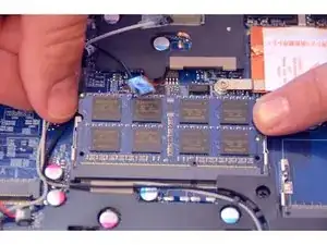 Найдите и отведите пружинные защёлки, удерживающие модуль памяти на месте.