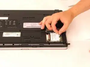 Переверните ноутбук и найдите наклейку, указывающую расположение интернет-карты.