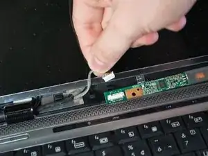 Отключите кабель подсветки с правой стороны инвертора, удерживая инвертор на месте и крепко тянув за разъем.