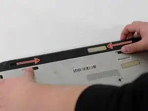Вытащите батарею, переместив переключатель с символом замка в положение разблокировки и нажав на переключатель с батареей к центру ноутбука.