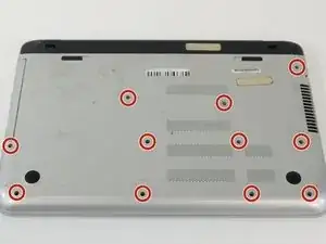 Переверните ноутбук, чтобы задняя панель была обращена вверх