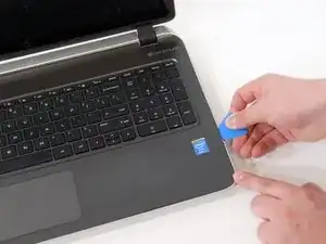 Используйте открывающий инструмент или клин, чтобы начать открывать крышку клавиатуры ноутбука.