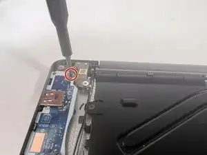 Используйте отвертку Phillips #00, чтобы удалить два винта длиной 3 мм, которые крепят USB порт.