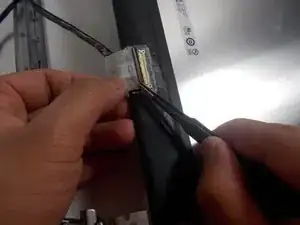 Используйте пинцет, чтобы отсоединить разъем кабеля от экрана.