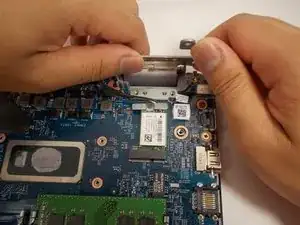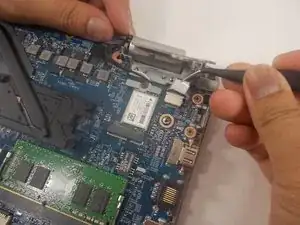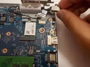 Снимите гнездо питания с ноутбука.