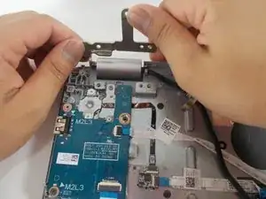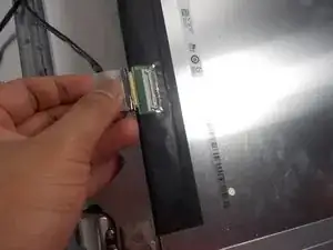 Ухватите кабель дисплея и извлеките его.