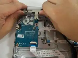 Пинцетом отстегните защёлку кабеля.