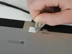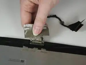 Аккуратно приподнимите тканевую ленту, чтобы получить доступ к креплению кабеля дисплея.