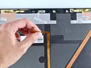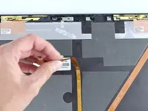 Используйте лопатку, чтобы отсоединить кабель от платы камеры, затем приподнимите кабель от блока ЖК-дисплея.