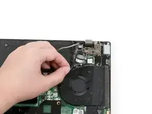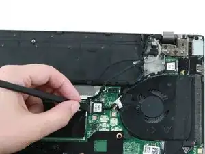 Поднимите кабель USB-платы пальцами и отведите его от ноутбука.