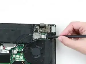 Используйте плоский конец лопатки, чтобы отсоединить USB-кабель от USB-платы.