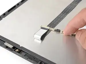 Кабель веб-камеры соединяет фронтальную камеру и стереомикрофоны с основной платой. Кабель проходит через левый шарнир и приклеивается к задней стороне дисплея.
