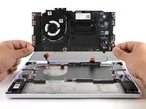Если вы случайно включите ноутбук во время ремонта, удерживайте кнопку питания в течение 10 секунд, чтобы выключить его.