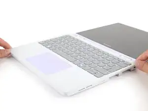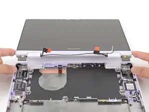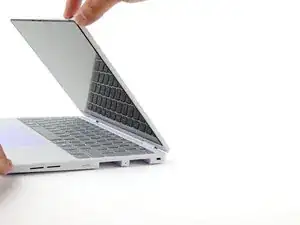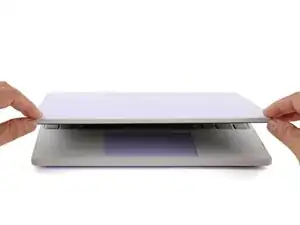 Просуньте пальцы под верхний край крышки дисплея, чтобы освободить её от ноутбука.