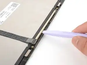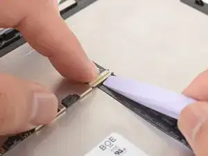 Используйте плоский конец отвёртки Framework, чтобы приподнять правый край крышки дисплея.