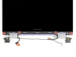 Используйте ваш отвертку Framework, чтобы установить четыре винта T5 Torx длиной 3.3 мм и закрепить дисплей на верхней крышке.