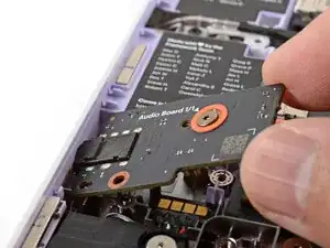 Поднимите правый край аудиоплаты пальцами и вытяните её из гнезда.