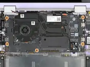 Используйте ваш отвертку Framework, чтобы затянуть пять фиксированных винтов T5 Torx и закрепить материнскую плату.