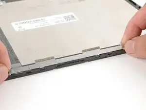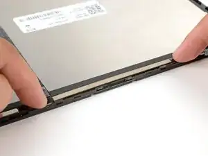 Пальцами сдвиньте дисплей вверх, чтобы защёлкнуть защёлки на верхнем крае дисплея.
