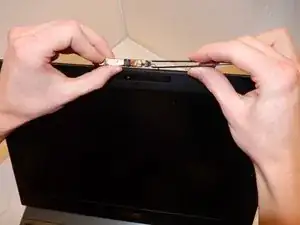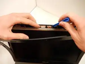 С помощью инструмента для открытия iFixit аккуратно отделите рамку, приподнимая два шва, не удаляя полностью пластиковую рамку.
