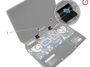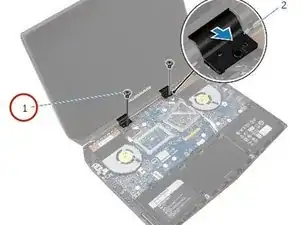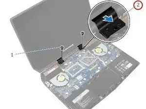 Верните винты, фиксирующие петли дисплея к основанию компьютера.