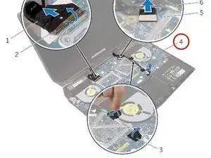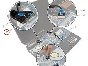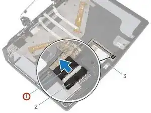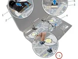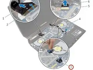 Снимите клейкие ленты, фиксирующие кабели антенн к системной плате.