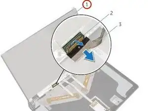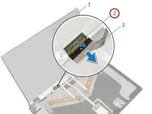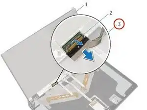 Поднимите защёлку разъёма и отсоедините кабель дисплея от панели дисплея.