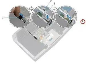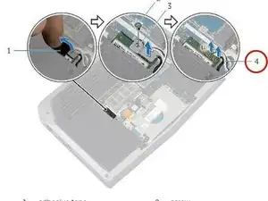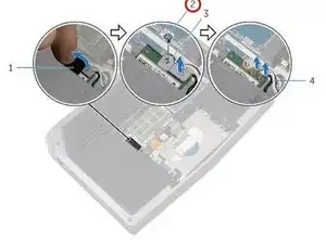 Удалите винты, которые закрепляют узел твердотельного накопителя на основании компьютера.
