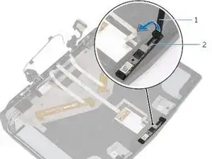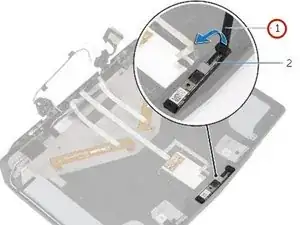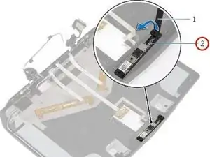 С помощью пластиковой лопатки отожмите модуль камеры от задней крышки дисплея.