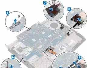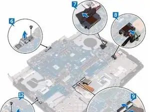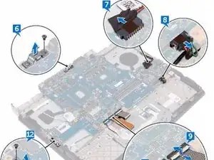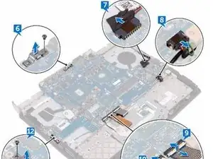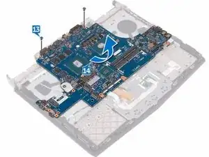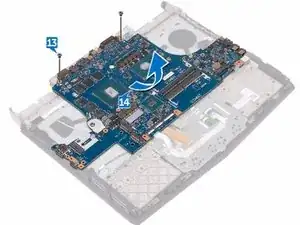 Выверните два винта (M2.5x6L), которыми системная плата закреплена на узле подставки для ладоней.